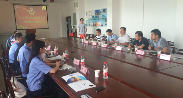 8月16日下午,武汉市江汉区万松街工委、区公安分局经侦大队杨志军教导员、李奕副大队长、法制大队陈英竹科长等一行七人来到太阳成官网,就武汉市江汉区“西园商业街”涉稳事件罪与非罪定性问题开展研讨。太阳成官网院长胡向阳教授、院长助理董邦俊教授、王安异教授、戴涛副教授和杨柳副教授参加研讨。研讨会在文治楼二楼会议室召开,戴涛副教授主持会议。