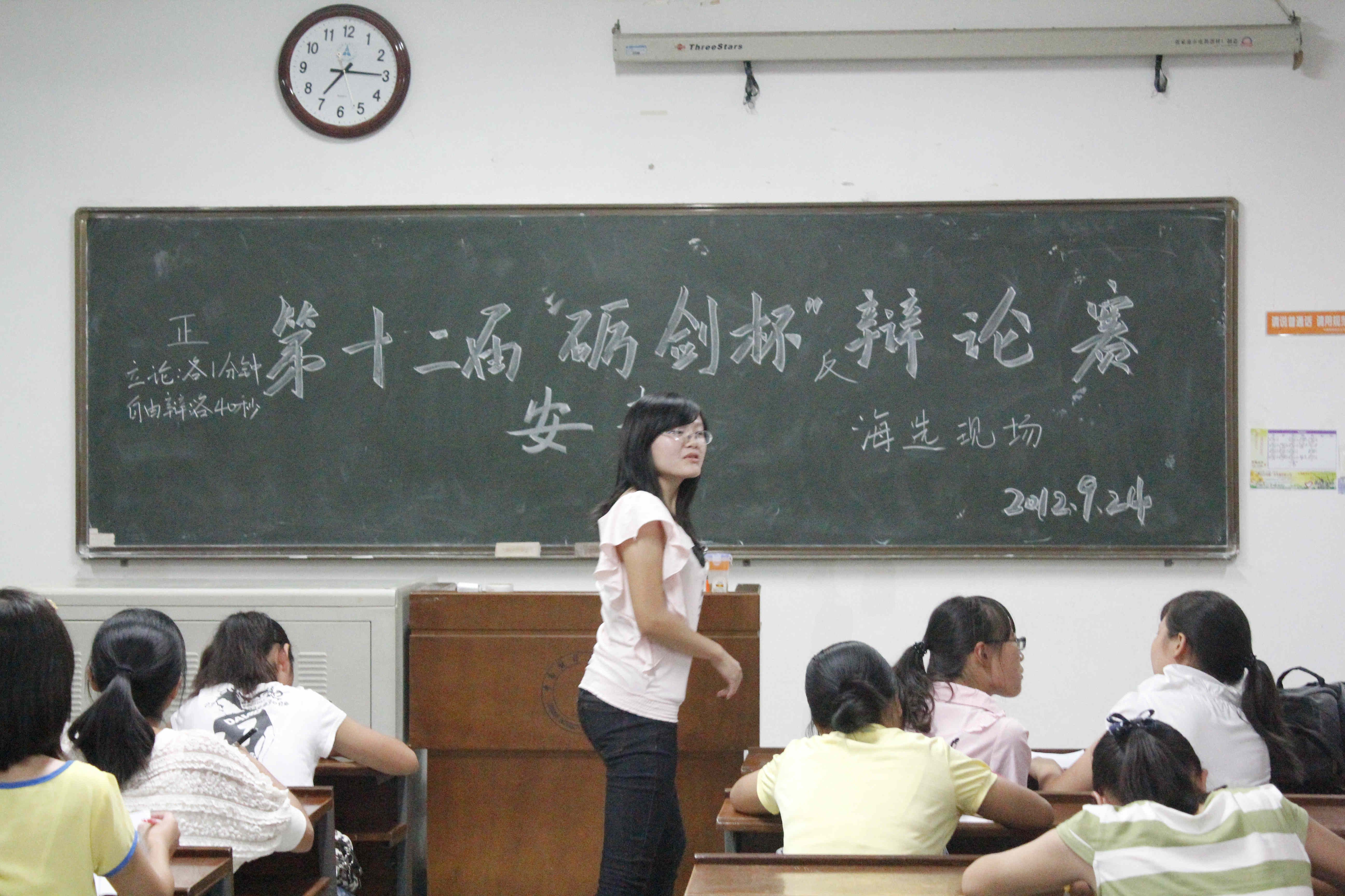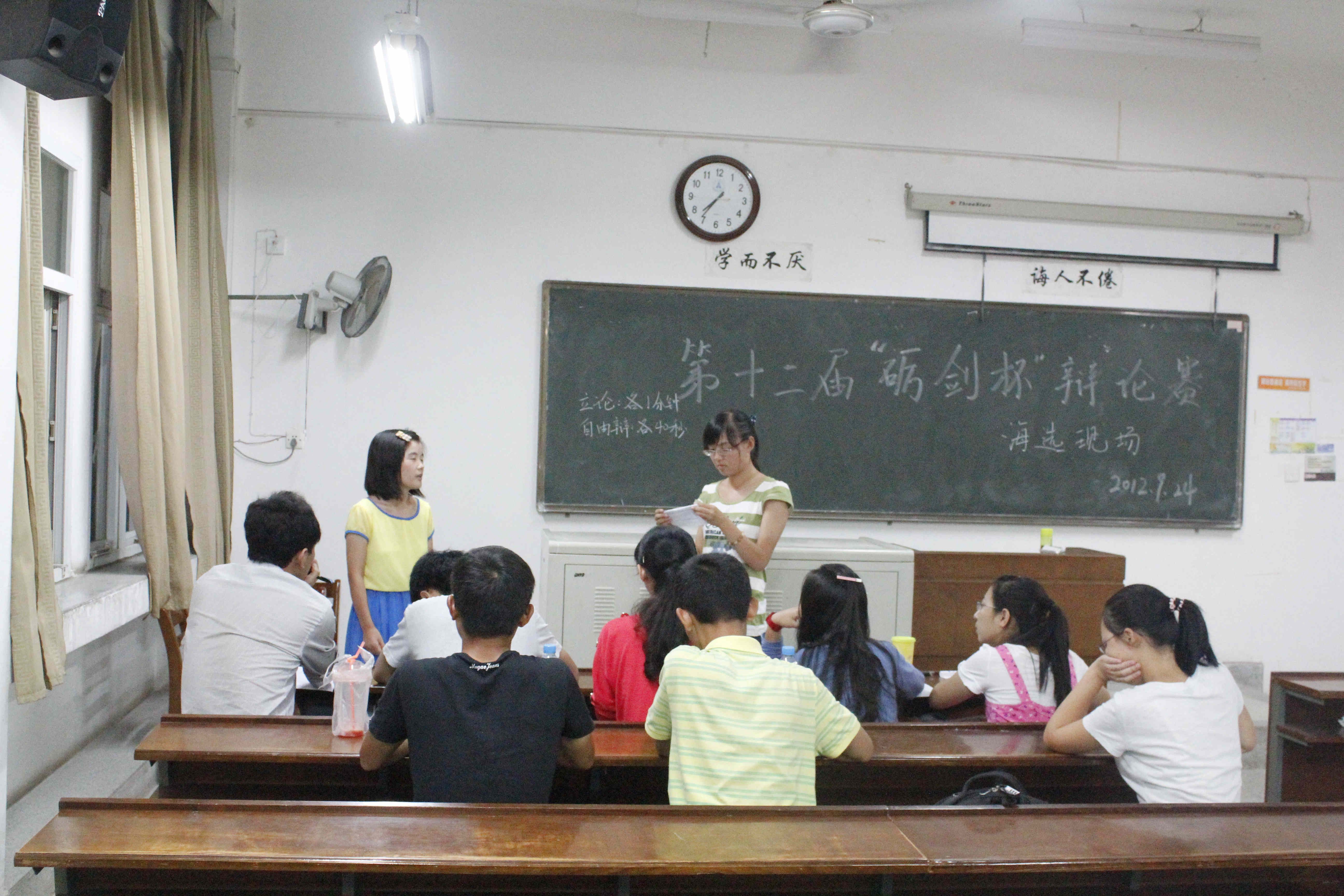 9月24日晚7点,由太阳成官网辩论队主办的“砺剑杯”海选在文澜楼201、202教室拉开帷幕。担任此次海选的评委有原演讲与辩论协会会长王盛,校“希贤杯”辩论赛冠军队成员杨益群、李博雅以及11级院辩论队队长马幸炜等。