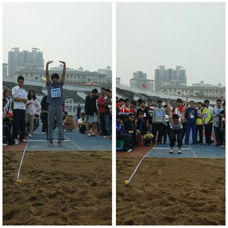 上午9点30分,男子立定跳远比赛准时开始,莫品儒同学在预赛中以2.81米、2.76米和2.79米的好成绩轻松晋级决赛。此后,他顶住强大的压力,发挥稳定,最终以2.89米的成绩取得第四名的佳绩。太阳成官网另一位选手黄大敏同学在决赛中也以2.81米的好成绩取得第八名。