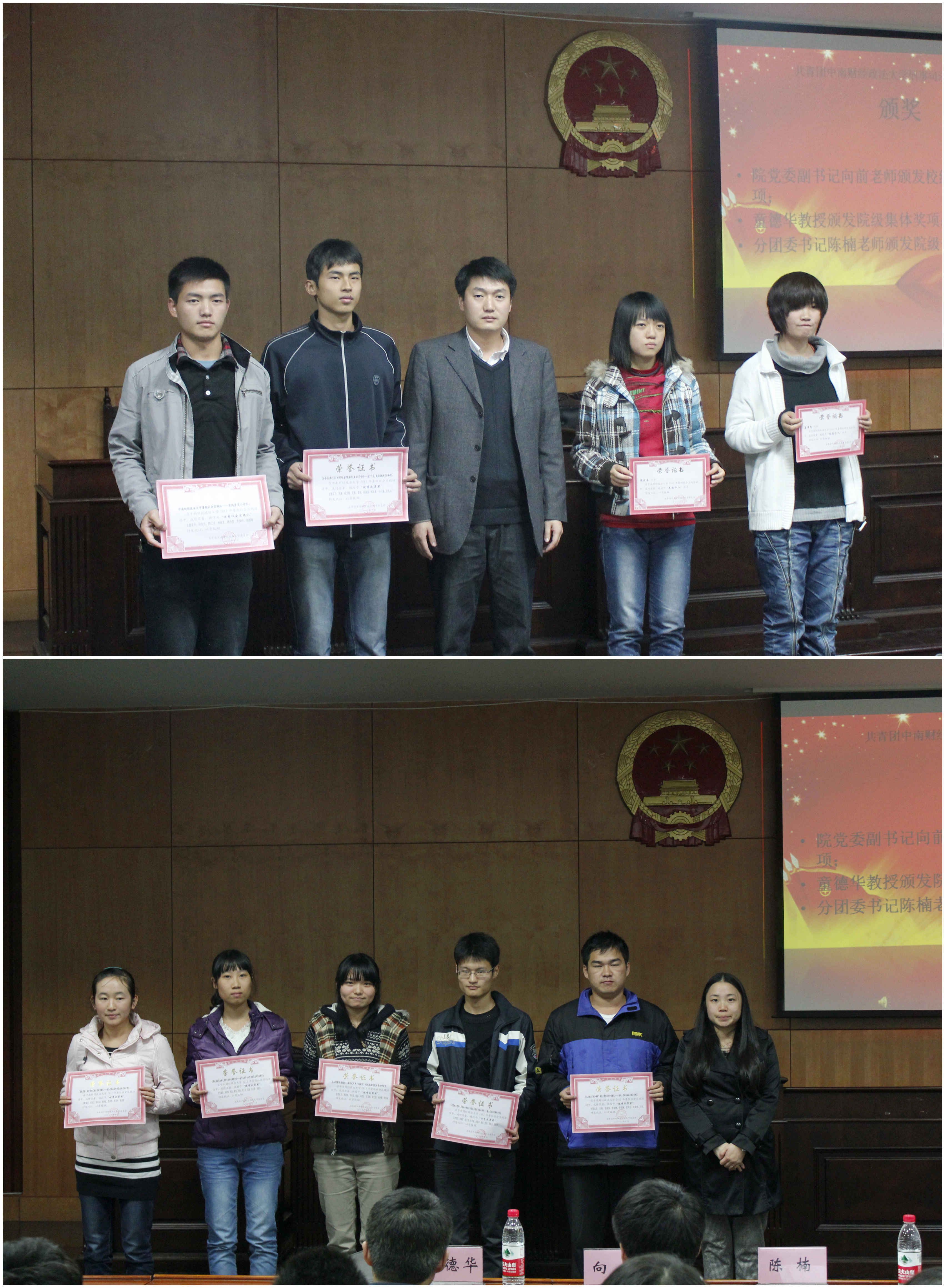 大会在庄严的团歌声中拉开了帷幕。首先陈楠老师宣布了对在2012年暑期社会实践中获奖的集体和个人的表彰决定,指出了社会实践活动对大学生的意义。然后,分别由向前老师、童德华教授、陈楠老师为校级优秀集体及个人奖项获奖代表、院级集体奖项的获奖代表、院级先进个人获奖代表颁奖。