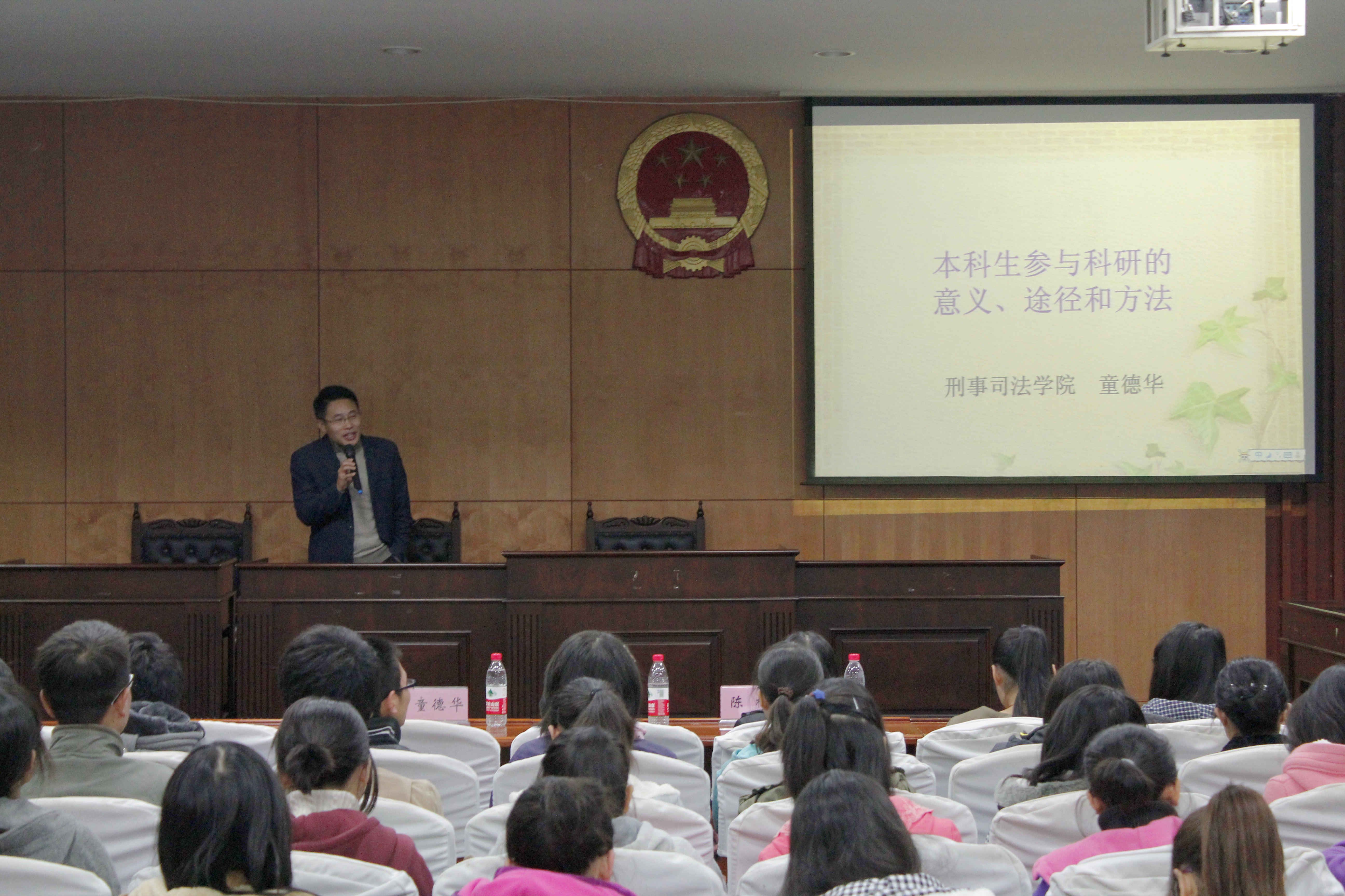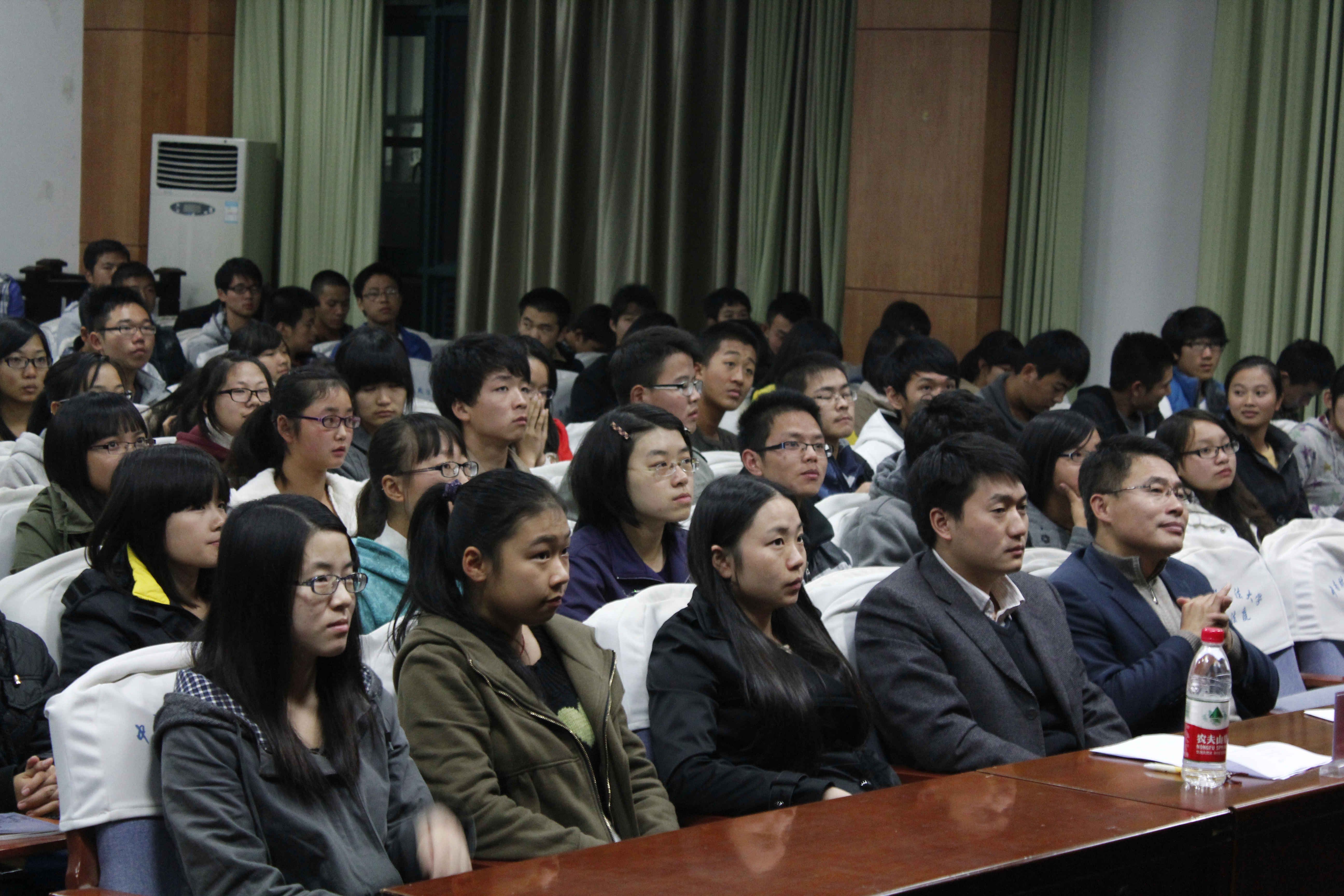 接着,童德华教授就本科生在参与社会实践活动中的选题、申请、立项等方面作出了生动的讲解,会场气氛活跃。童教授的讲解在同学们当中引起了强烈反响,会后同学们纷纷表示以后要更加积极地参与学生科研活动,以此来锻炼能力、提升自我。