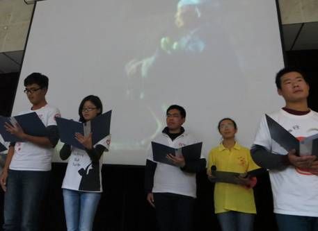 随后,志愿者服务文化月成果展示汇报大会也在2012年志愿服务文化月视频回顾中拉开了帷幕。本次成果展示汇报大会也被别出心裁的分为了守望、信念、圆梦三个篇章,使得大会亮点频现,精彩连连。有激情洋溢的“青春献礼十八大,歌颂心中那片美”诗歌朗诵;有来自货币金融历史博物馆的中英双语展示讲解;有充满人性光辉的电影《海洋天堂》片段的放映;更有志愿者手持红烛轻唱爱心公益歌曲《和你一样》。