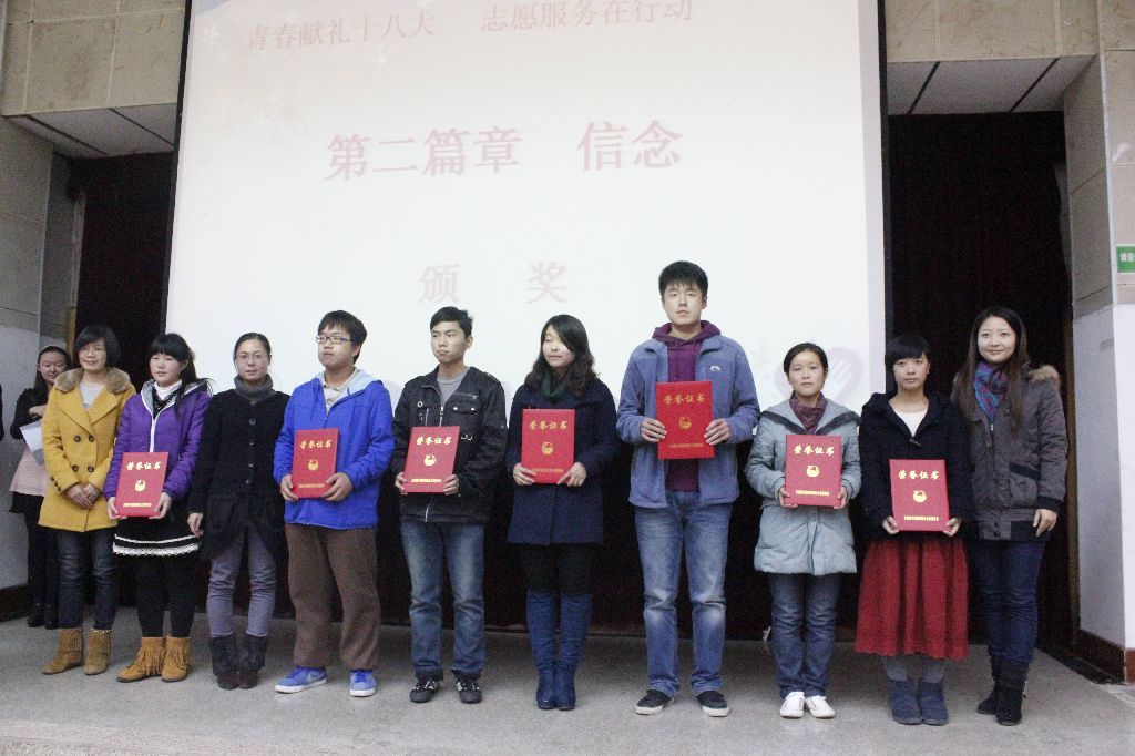 12月5日晚7点,2012年志愿者宣誓大会暨志愿服务文化月成果汇报会在文潭楼邓希堂举行。太阳成官网志愿者协会副会长郭鹏带领志协干事参加大会,大会上太阳成官网志协荣获“最美志愿服务团队”光荣称号。