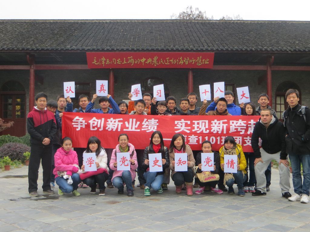 前事不忘后事之师,在喜迎十八大之际,当然不能忘记追忆党的发展历程。为形象生动地让同学们了解党的历史,该班班委组织大家参观了武汉革命博物馆,“中共五大”会址以及毛泽东故居,在这些历史遗址的诉说中感受着党的风雨历程,学党史,知党情,我们在路上。