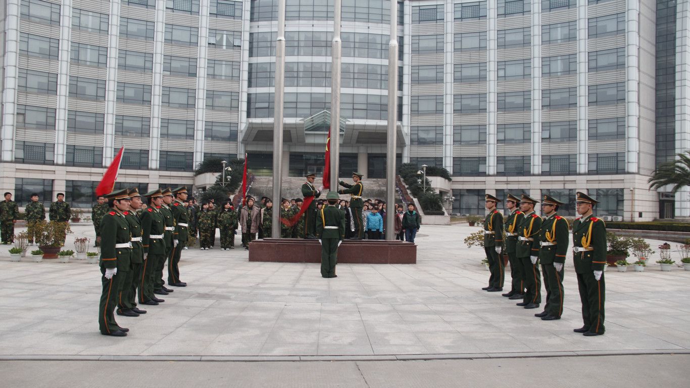 当日清晨6点50分,全体成员们身着迷彩准时集合完毕。天色渐明,校国旗护卫队的旗手们肩扛鲜红的五星红旗,踏着整齐划一的步伐,铿锵有声地走向升旗场地。脚步声落,国歌奏起,国旗冉冉升起,映照出的是大家赤忱的爱国心。升旗仪式结束之后,学生国防教育协会代表在国旗下进行了演讲,带领大家重温历史,当年北京青年学生抗日示威游行的画面仿佛就在眼前,警醒着大家勿忘国耻。