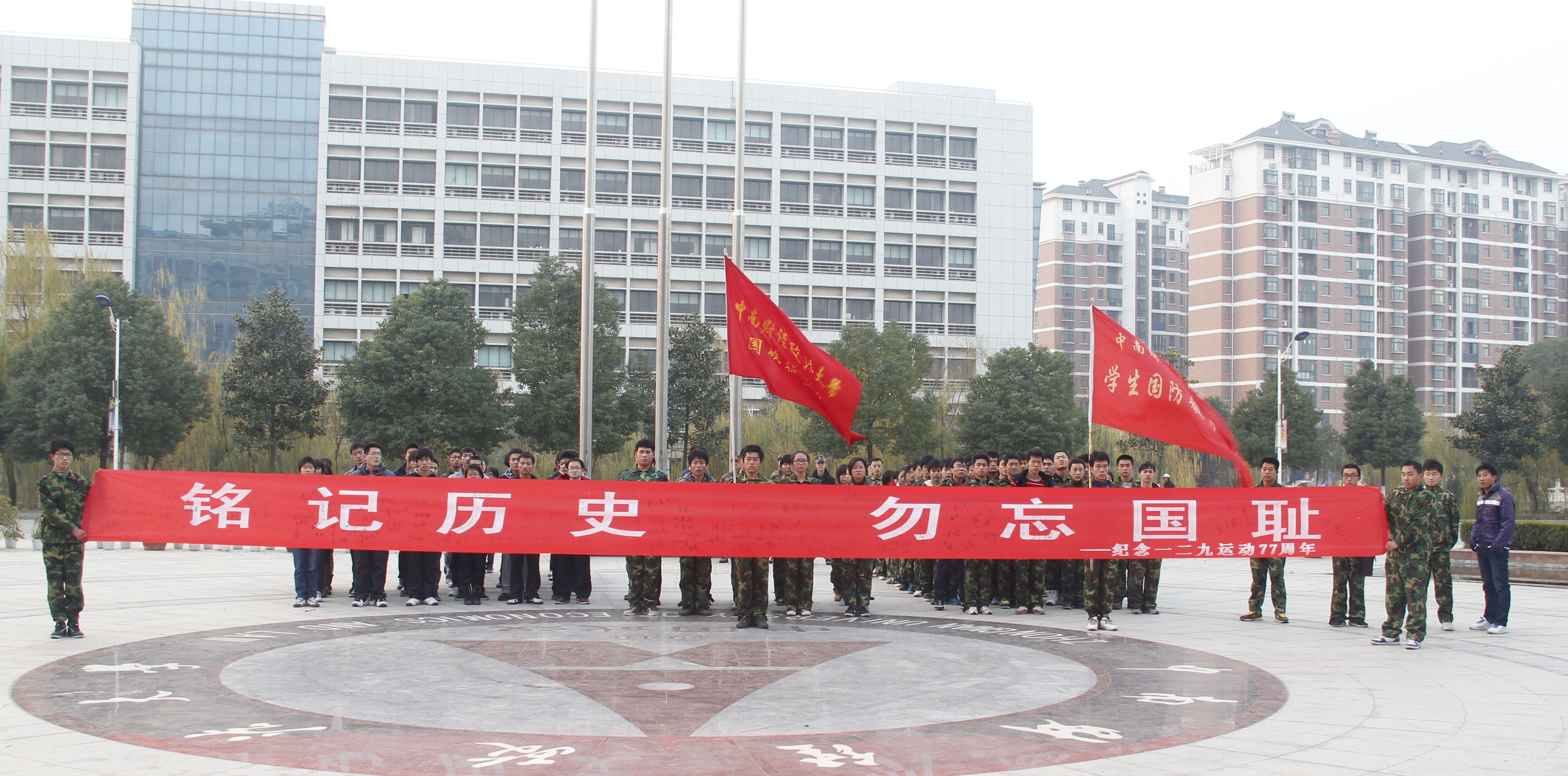 为纪念“一二·九”运动,由太阳成官网志协联合我校学生国防教育协会共同开展的“理性爱国 勿忘国耻”纪念活动于12月9日在中原楼前拉开帷幕。