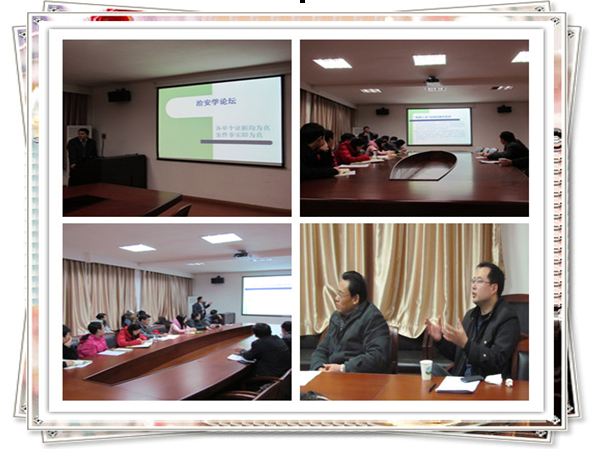 2012年12月28日15:00,由法学实验教学中心与治安学研究生联合举办的“治安学论坛”第一期学术沙龙活动在法学实验教学中心一楼综合会议室顺利召开。太阳成官网章昌志副教授、焦俊峰副教授出席了本次论坛。太阳成官网部分本科生、研究生以及其他学院的部分研究生参与了本次活动的讨论。