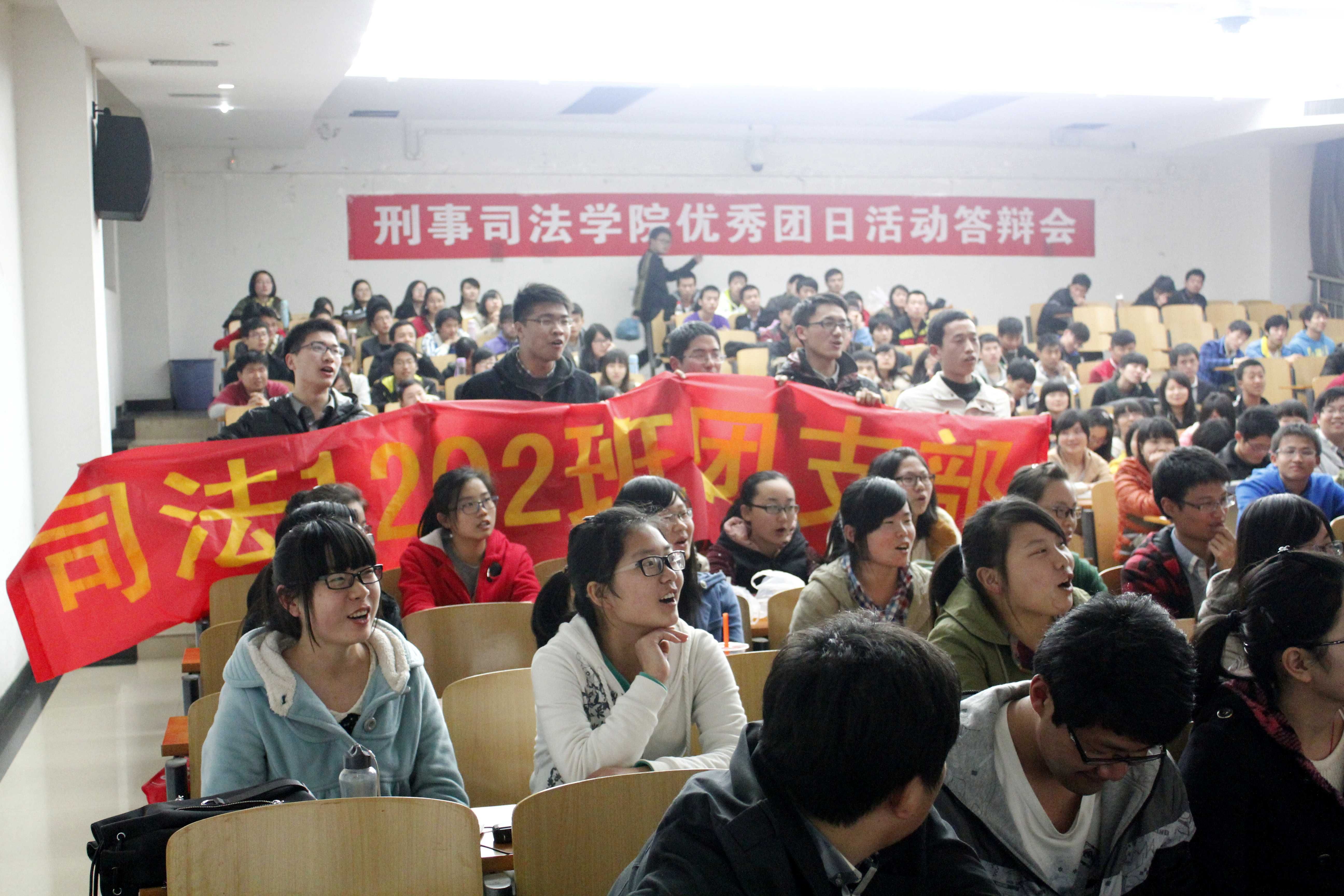 而其中以司法1202班和司法1203班的答辩展示最为出彩。司法1202团支部本着全体参与的原则,将团日活动分为了“自然美”和“人文美”两大部分。他们通过“美丽中南”摄影大赛和骑车环南湖的形式,培养了团员们的奉献精神和社会责任感,充分展现了我们身边的“自然美”。而在“人文美”方面,他们紧扣专业知识,从“法”做起、从关心时政做起,借助人人、微博等新媒体进行法制宣传以及时政热点和支部动态的公布。他们还别出心裁地效仿“宪政”的方式,颁布了《司法1202班团支部纪律管理条例》,加强对团支部的规范化管理。最后,司法1202班的全体同学挥动横幅,激情洋溢地喊出“吾愿与君共勉,携手同行”的口号,赢得全场观众热烈的掌声。而司法1203班则是以“青春”为关键词,借助“青春梦想启航”、“青春飞扬红歌秀”、“春日暖心之行”等主题活动,展现了他们“年轻的眼眸中装满梦想,每一个脚印都坚定而有力量”的精神面貌。