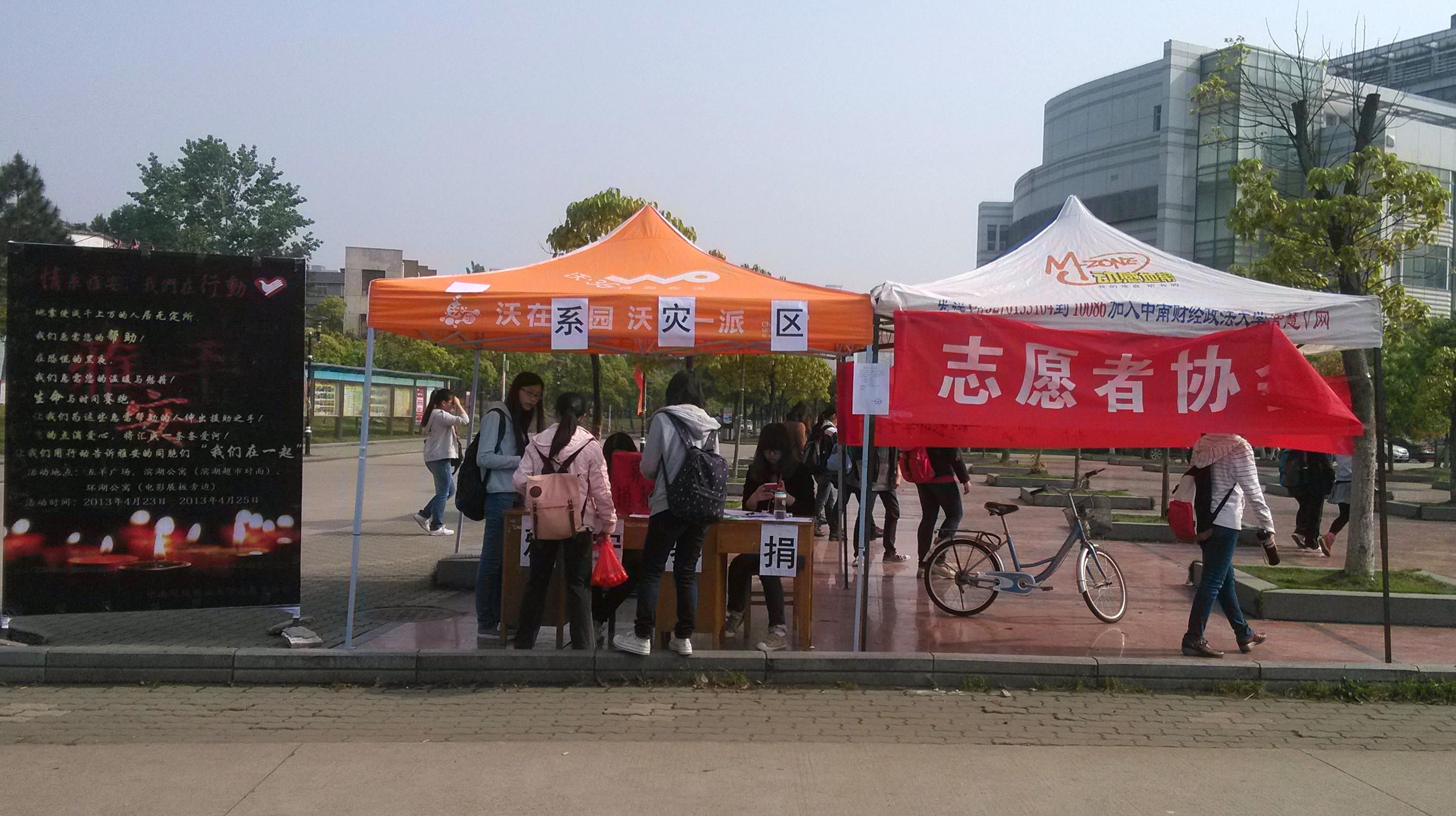 北京时间2013年4月20日8时02分,四川省雅安市芦山县发生7.0级大地震,灾情十分严重,目前伤亡人数仍在不断上升。4月24日早上8时,太阳成官网志愿者协会联合其他12个学院志愿者协会在校志协的带领下于五羊广场、环湖和滨湖宿舍三处设募捐点,号召广大学子伸出援助之手,为灾区人民送去爱与温暖。据悉,此次活动将持续三天,所筹集的善款会通过“壹基金”捐给雅安灾区,而应急物品则会在第一时间运往雅安民政局。