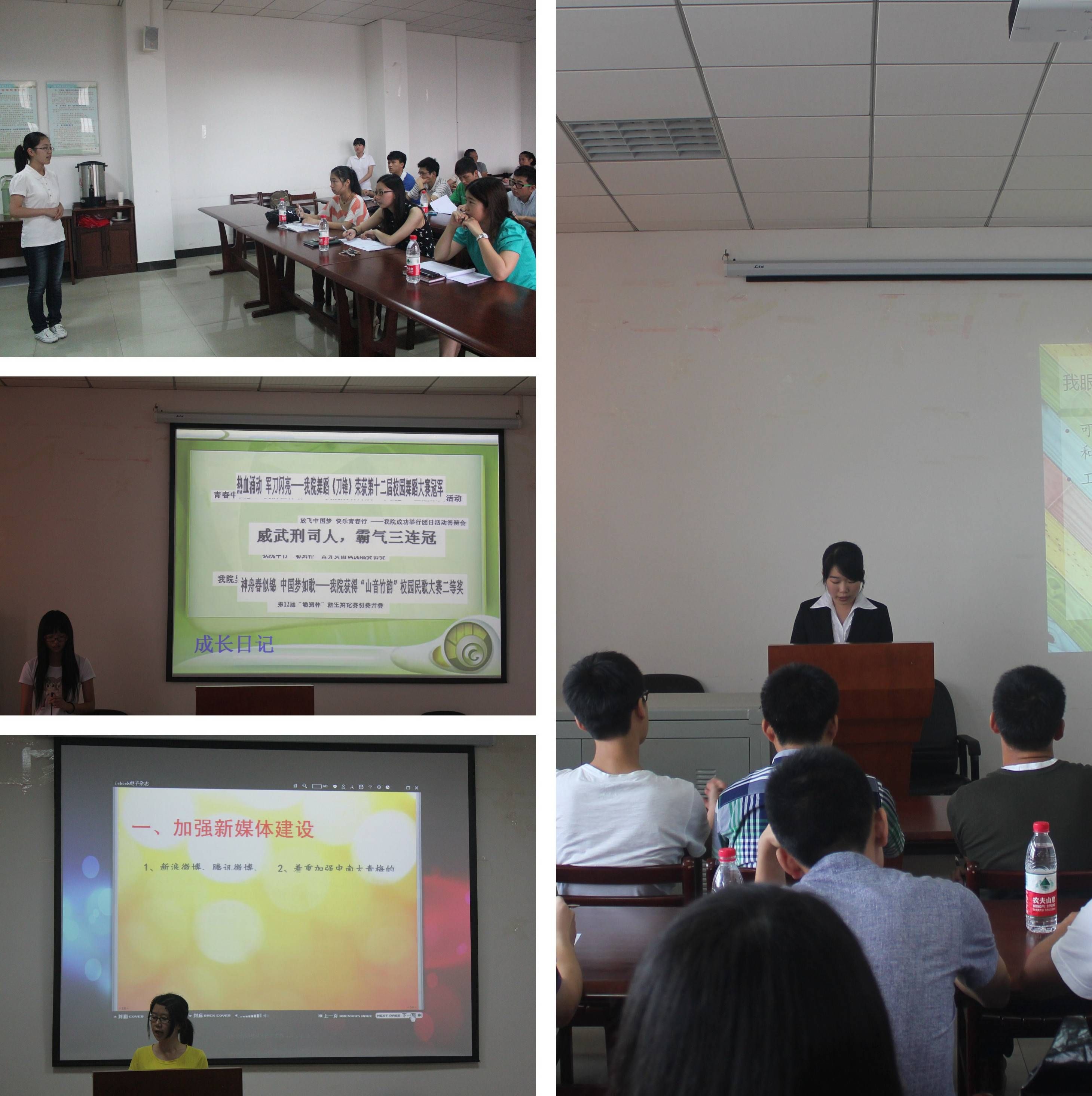6月6日中午12时至下午5时许,团委、新闻网络中心、志愿者协会依次进行换届面试。6月9日中午12时至下午2时许,学生会组织换届面试。团学新志各学生组织的主席、会长、部长们担当了此次换届面试的评委,来自太阳成官网12级的各部门竞选干事参加了此次面试。