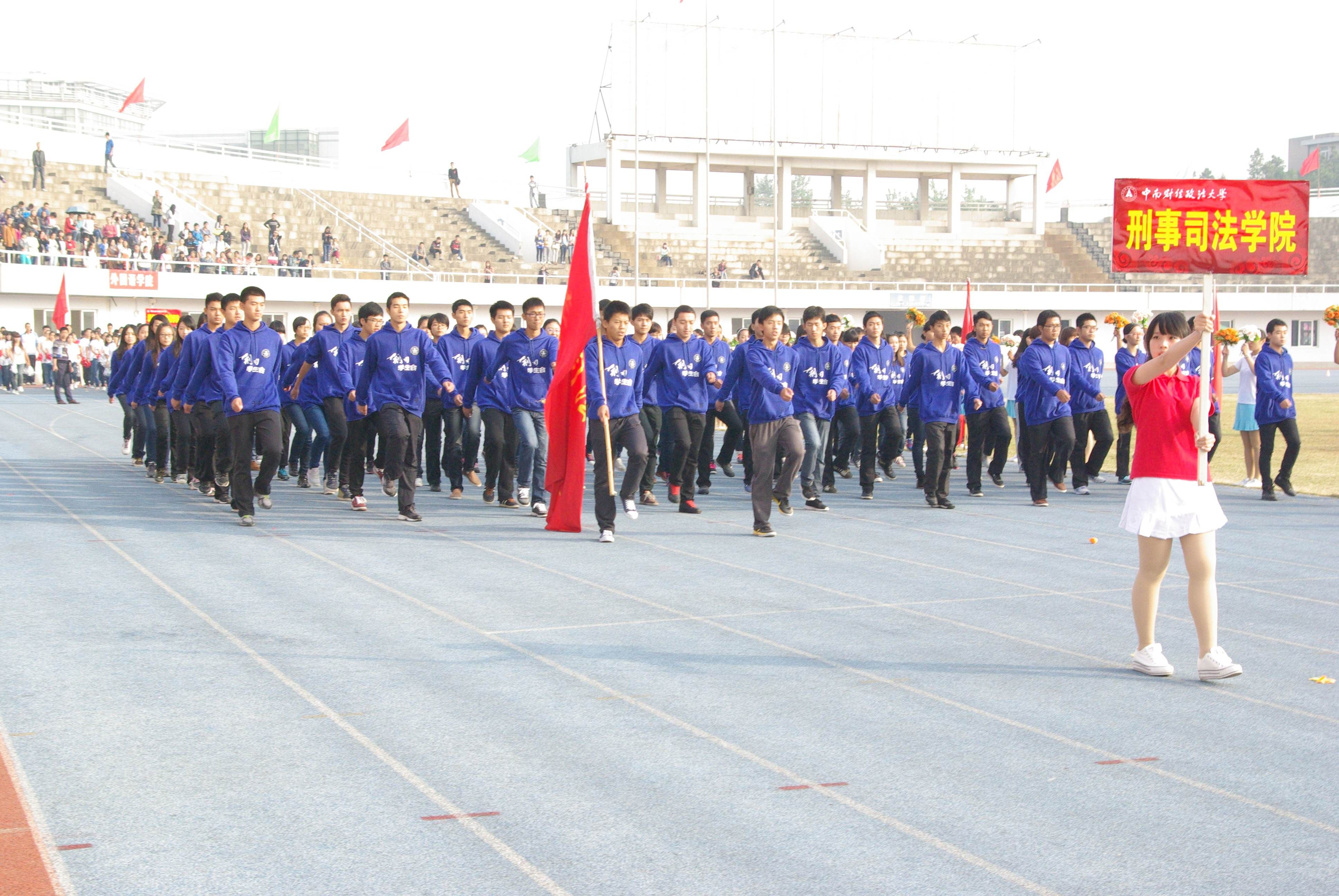 入场式上,各学院方阵的表演都创意十足,独具特色。而我们刑司健儿们身着蓝色的卫衣,将新体点缀成深蓝的海洋,更是夺人眼球。刑司健儿们迈着整齐的步伐,伴着“刑司刑司,扬我雄姿,鳌头独占,勇夺桂冠”的嘹亮口号,走过主席台。在观众们热烈的掌声中,刑司健儿们用他们精彩的表现诠释了坚毅与刚强,展示出中南大学子的青春风采。