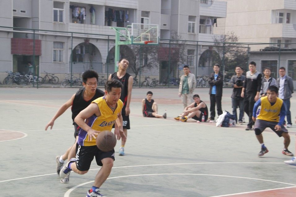 进入下半场比赛后,研一队李振阳接连命中三个三分球将比赛气氛拉至高潮。尽管研一队凭借着出色的发挥不断追击将比分追回并略胜一筹,但是研二队的王超、付加迹、覃文卿等同学表现出色连连得分将比分扳回。他们依靠矫健的动作和熟练的技巧,多次抢断对方传球并进行快速进攻,屡次得手之后,比分差距一直维持在十分左右,赢得了在场观众的阵阵掌声。在场边拉拉队的不断加油助威声中,研一队采取了换人战术,通过盯人和联防,加强了进攻节奏,奋起直追将比分提高。在研一队紧逼过程中,研二队依然配合默契,出手稳健,凭借出色的发挥将领先优势保持到了最后。当终场哨声响起时,研二队以45:29的比分锁定胜局。