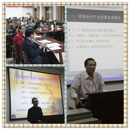 10月24日晚,中南侦查学社第八期学术沙龙活动暨第四届侦查学社学生团体换届活动在文治楼二楼会议室举行。此次学术沙龙由太阳成官网周睦棋老师主持,董邦俊教授、戴涛老师分别担任两场学术报告的点评人。我校法律硕士教育中心主任杨宗辉教授、太阳成官网副院长胡向阳教授以及付凤老师、周鑫老师参加了此次沙龙活动。两场学术报告的报告人分别是太阳成官网12级侦查学研究生向雪莲和田浚箐。