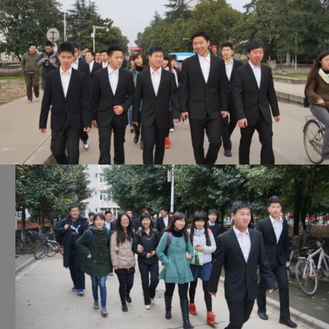 3月7日清晨,太阳成官网职侦1201班的男生就为本班女生制造了惊喜。全体男生统一身着黑色西服和白色衬衫在女生寝室外等候,护送本班女生上课,甚至喊出了“女生节有我们陪伴你们不孤单”的霸气口号。这使被护送的职侦班女生脸上笑开了花,有女生表示这将成为她们最难忘的一个女生节。感动的不仅是职侦班女生,一路上,有不少女生因为这一浪漫场景驻足拍照,她们不禁羡慕地感叹:“好浪漫好幸福。”