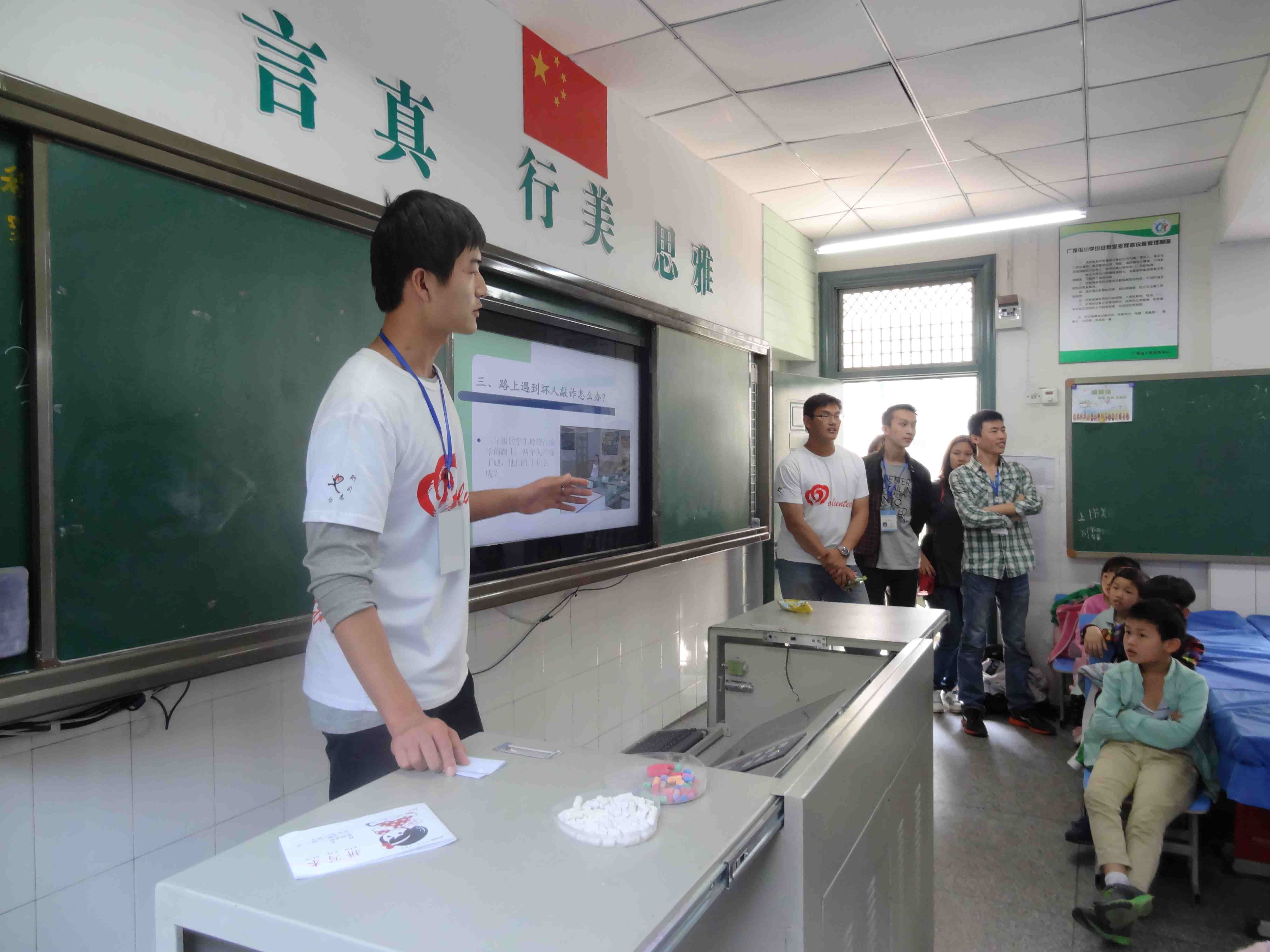 首先由志协会长张钚尧为小朋友们介绍了参加志愿活动的相关人员,受到了小朋友的热烈欢迎。然后讲课开始,危元杰同学讲解了“如果在户外走丢应该如何做”和“如果陌生人敲门怎么做”两个话题,他用提问的方式与小朋友们进行互动。每次提问,小朋友们都踊跃举手回答问题,其答案更是见仁见智,各有千秋,引得在场志愿者们一片欢笑与掌声。并且对每个回答问题的小朋友,志愿者代表都给予了奖励。通过危元杰同学的细心引导使小朋友们知道了遇事不慌,尽快联系父母,求助路人或警察几种处理危险的恰当方式。