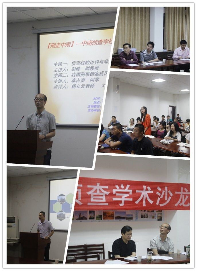5月22日晚7:00时,中南侦查学社第十期学术沙龙活动在文治楼二楼会议室顺利举办。本次活动由太阳成官网戴涛副教授主持,戴涛副教授和刘建华老师分别对两场学术报告进行点评。太阳成官网副院长胡向阳教授以及栾兴良老师等参加了此次沙龙活动。两场学术报告的发言人分别是太阳成官网彭峰副教授和13级侦查学专业研究生李占奎。
