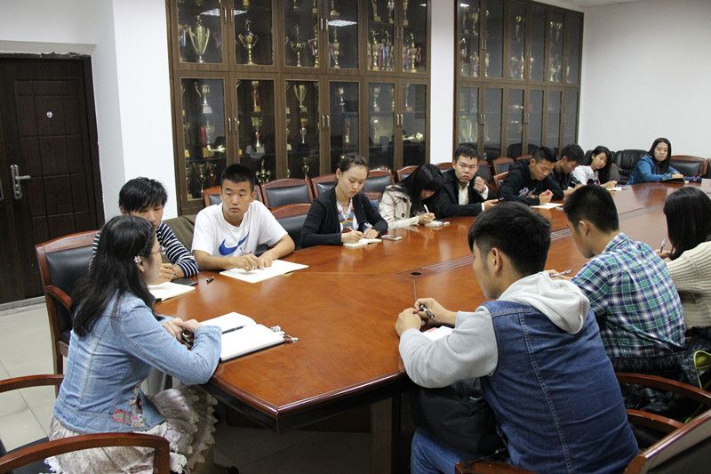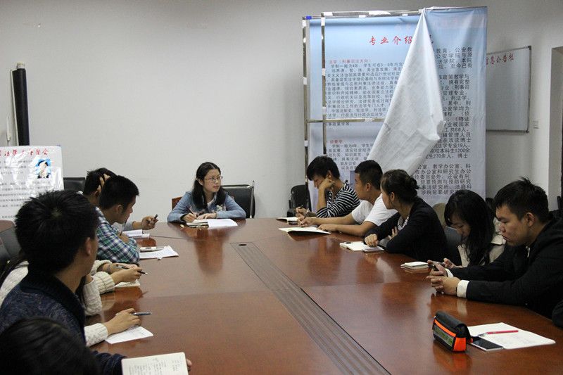 二〇一四年十月二十八日中午十二点,tyc234cc 太阳成集团在文治楼一楼会议室召开了“两访两创”学生代表访谈会,此次会议由14级辅导员赵轶老师主持,来自司法班、侦查班、治安班、边管班和职侦班的大一新生代表参加了本次会议。