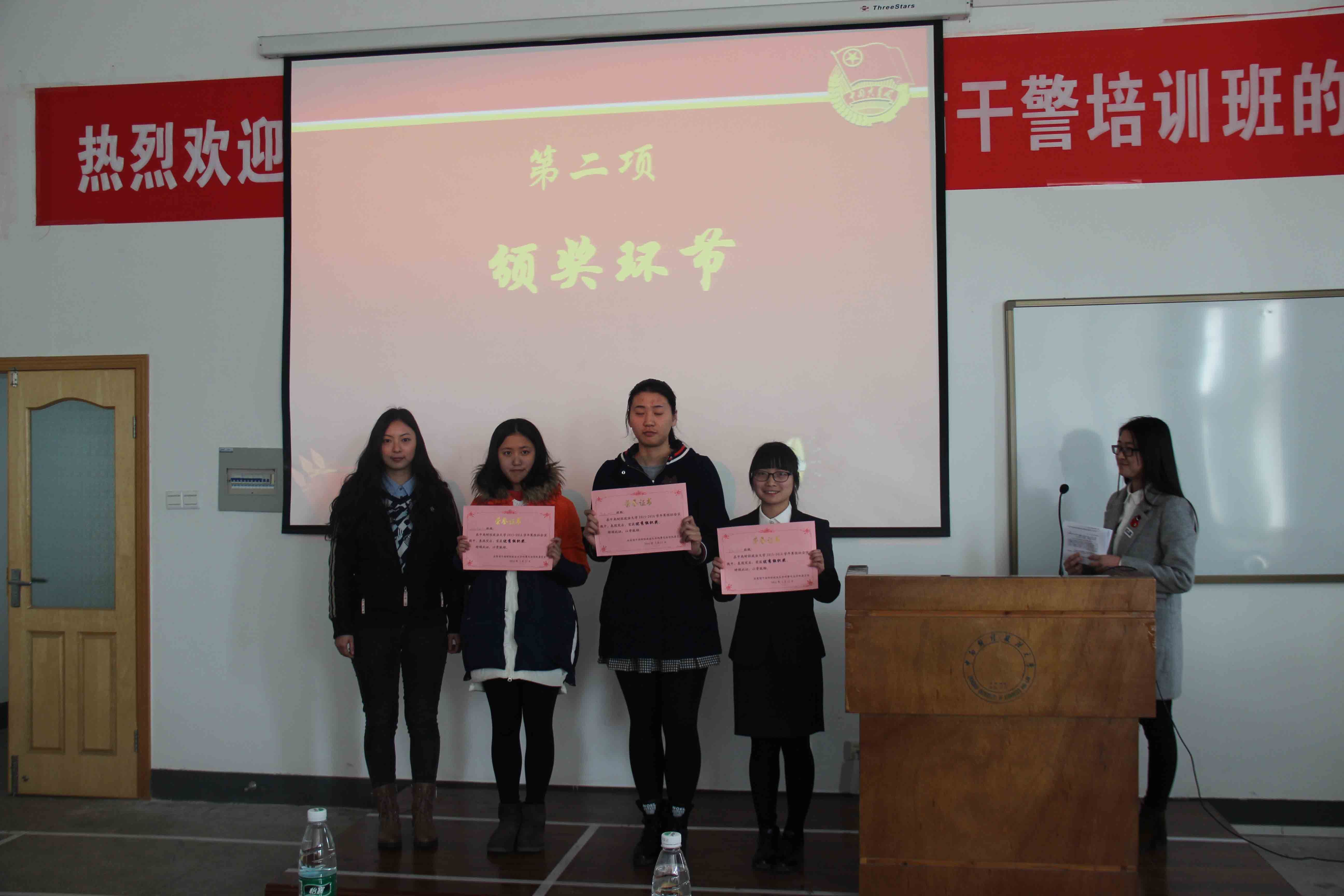 首先进行的是寒假社会实践优秀班级评选。司法1401、司法1402、治安1501、侦查1501、职侦1501以及边管1501的团支书依次上台进行成果展示。每位团支书都向大家详尽而又精彩地展示了本班的社会实践成果,赢得了观众们的阵阵掌声。最终,司法1401、司法1402和边管1501班获得了寒假社会实践优秀组织奖,张帆老师依次为获奖班级颁发奖状并合影留念。