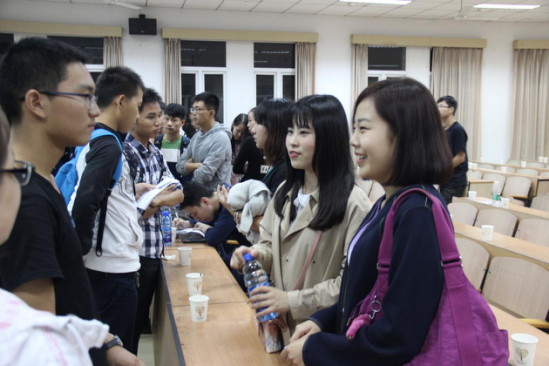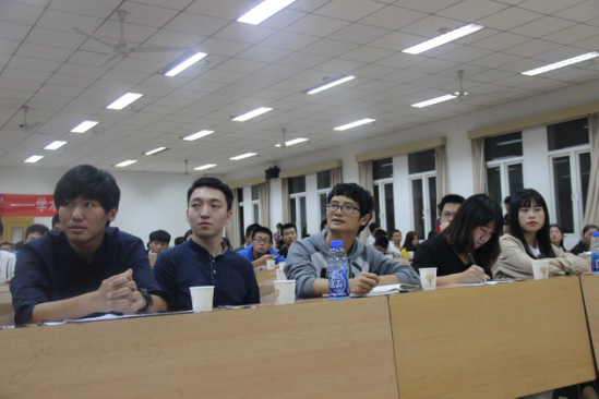 本次分享会的主题是“预见四年后的自己”。学术部特意邀请了2013级推免生马晓宇、韩岳洋、陈诗寒、樊颖奇、庞万腾五位同学为16级新生进行经验交流。保送到北大法律系的研究生马晓宇是受邀学子中的一员,她向新生分享了关于学习和考试的经验,还针对“翘课”、“课外学习”、“理科生如何克服学法律的困难”等新生普遍提出的问题作出了解答,并根据自身的经历提出了中肯的建议。而保研至中国人民大学的韩岳洋同学则以“读书与生活”为主题进行了经验分享。他强调:读书一要效率,二要广泛。大一时期尽可能地多读书,获取更多的知识,大二便可以读一些符合自己兴趣的书,专读某一方面的书籍。他还提到,大一时期出现的迷茫是很正常的,但是与其迷茫地想象,不如亲手去做一些事。想,不如去做。
