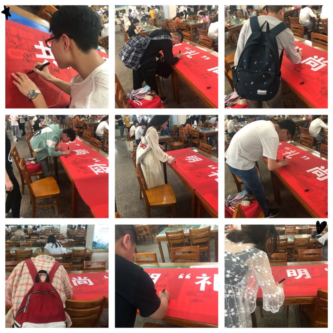 中午11:00,文明食堂活动正式开始,本次活动主要分为两个环节: 监督文明用餐与长卷签名。