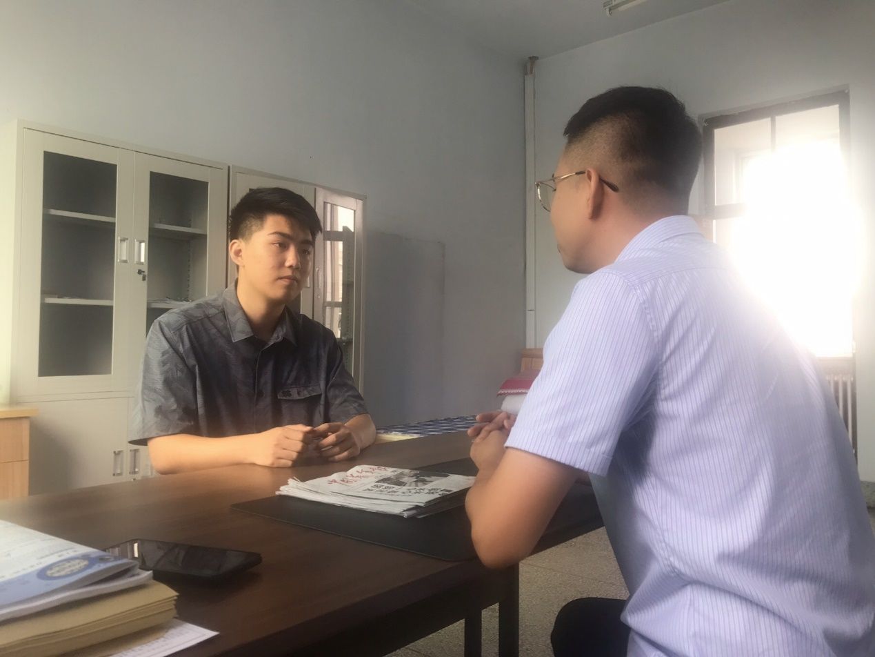 (图为调研团队成员与公主岭市第一中学团委书记进行实地访谈)
