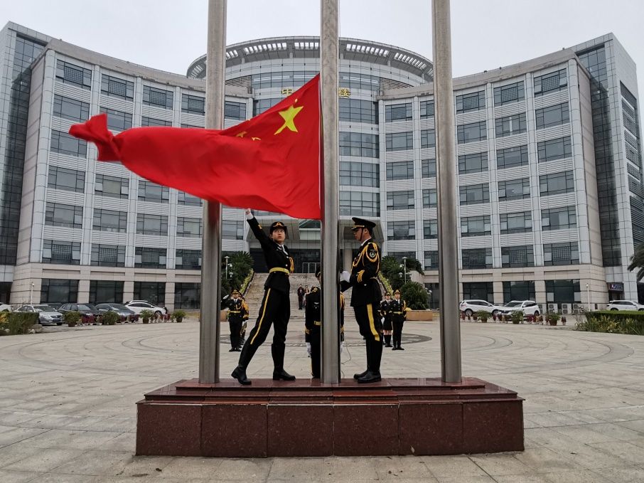 上午7时整,国旗护卫队准时从文治楼出发向中原楼行进,英姿飒爽的风姿吸引了众多师生的目光。他们迎着朝阳,昂首挺胸,踏着整齐铿锵的步伐将五星红旗护送至升旗台。“升国旗,奏唱国歌!”随着一声令下,雄壮的《义勇军进行曲》奏响,五星红旗冉冉升起,一声敬礼,全场肃穆。现场观礼的师生在庄严肃穆的气氛中共同回忆历史,缅怀先烈,向在抗日战争中死难的同胞默哀。