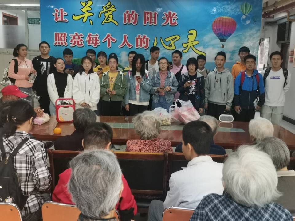 上午9时,志愿者们携带着探望物资来到了汽发社区养老院。养老院的老人们在一起享受着和煦的阳光,对突然到访的志愿者感到十分惊喜。志愿者们先将事先准备好的水果和衣服分发给各位老人,之后便表演起了准备许久的特别节目,正逢新中国成立七十周年,志愿者们一起饱含深情地演唱了歌曲《我和我的祖国》,朗诵了毛主席的诗《七律·长征》,铿锵有力的朗诵在带动现场气氛的同时,也使老人们回忆起自己的峥嵘岁月。