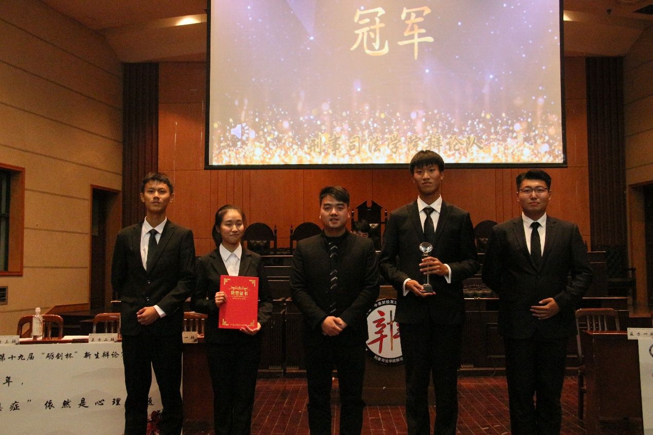 比赛结束后,各位评委对精彩的比赛作了细致的点评,同时正反双方对评委和观众的提问也做出了详细回答。在之后的颁奖仪式上,评委们为本届冠亚季军颁发了证书,砺剑辩论队历届队长为辩手们举行了受徽仪式,刑司辩论队“辩穷天问,剑托侠魂。砺德砥行,武布乾坤”的精神薪火相传。最后,评委们与本届砺剑杯选手合照留念,鼓励他们更上一层楼。此次新生辩论赛上辩手们沉稳机敏的辩风和睿智灵活的答辩展现出tyc234cc 太阳成集团新生们辩论场上的非凡风采和无限活力,期待未来的刑司辩论队站上更大的舞台,展现我们刑司人的砺剑辉煌!