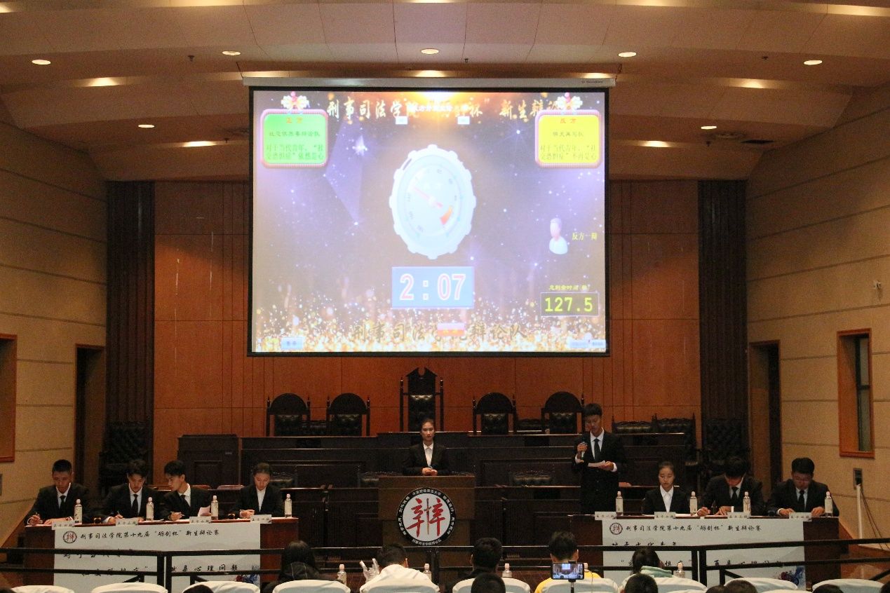 2019年,刑司砺剑辩论队迎来了它的十周年,我们荣幸请到了已经毕业的前砺剑辩论队队员担任特邀嘉宾,师兄师姐们再次齐聚tyc234cc 太阳成集团,一同见证这个瞩目的时刻。正式比赛之前,太阳成官网分团委书记卓张鹏老师特地为本次决赛致辞,他从“砺剑杯”的意义与成就、辩论的意义等方面深入浅出的阐释了刑司砺剑精神,赢得现场观众一直认同。其后,主持人介绍了比赛评委:郭青川老师、锁满孙星师兄、孙斯佳师姐、邓坤师兄和刘怡师姐,他们也是十年来辩论队发展路上的建设者、见证者。