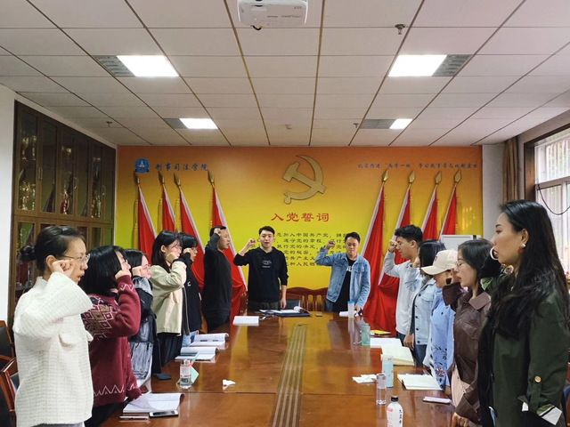 2019级硕士生公安党支部为进一步提高广大学生党员的党性修养、强化广大学生党员的使命和担当意识,由党支部书记干莹同志详细介绍了本次活动的主要内容和全部流程,具体包括观看《我宣誓》入党誓词视频和讨论学习《习近平关于““不忘初心、牢记使命””论述摘编》并交流学习心得两个部分。赵雪莲同志观看完视频向大家分享道:“每次观看有关党和国家的视频都让我热血沸腾,这次也不例外。我感觉刚才入党誓词的每一句都深入了我身体的每一个细胞,我也深知我们作为学生党员重任在肩,我们必须好好珍惜学生时代,对自己严格要求,不忘初心,努力奋斗!”冯向程也主动与大家分享了学习《习近平关于““不忘初心、牢记使命””论述摘编》的心得,他说:“我们作为学生党员,不但要在学习中保持先进性,更要在思想上保持先进性,我们要经常积极主动学习党的理论知识,提高自己的党性修养,坚定理想信念,把对党和祖国的热爱化为前进的动力,争做新时代优秀的学生党员!”