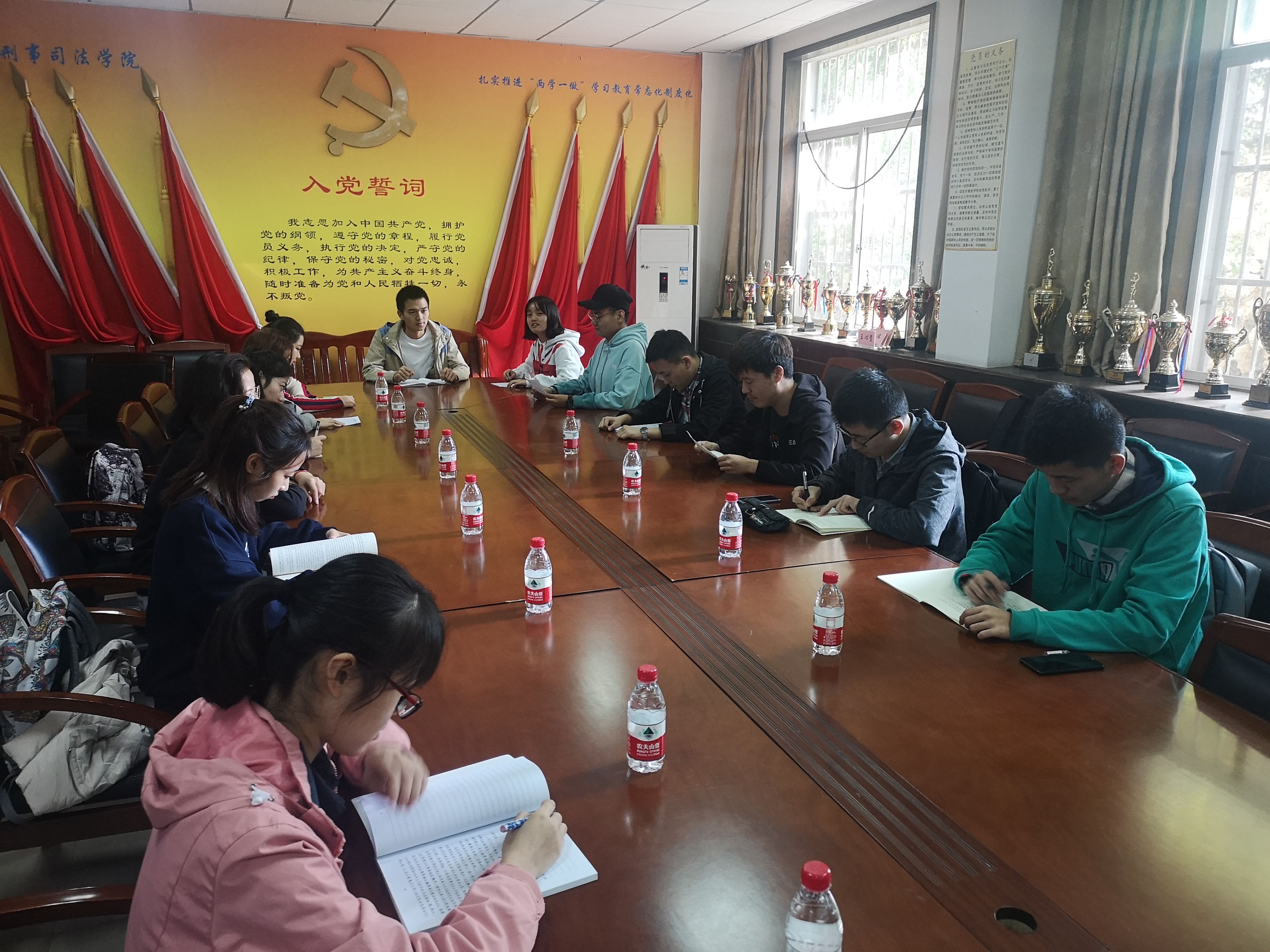 活动伊始,朱嘉颖带领红旗党支部成员重温入党誓词,回顾起点,铭记初心。随后,在朱嘉颖的组织下,与会成员自主学习了《中国共产党第十九届中央委员会第四次全体会议公报》《“一次具有开创性、里程碑意义的重要会议” ——六部门负责人权威解读党的十九届四中全会精神》等文件,领悟相关文件和会议精神,并展开讨论。17级发展对象刘嘉斌说道,作为新时代的大学生,要增强“四个意识”,坚定“四个自信”,做到“两个维护”,紧紧围绕在党的身旁。党的十九届四中全会是一次具有开创性、里程碑意义的重要会议,党的历史上首次用一次中央全会专门研究 国家制度和国家治理问题。国旗护卫队426号队员覃盼越也发表了自己的看法,他认为中国在近一段时间里面对的挑战会更多,作为新时代大学生,要在这一充满挑战的时期中,“不忘初心、牢记使命”,不断提高、完善自身,争做大学生排头兵。