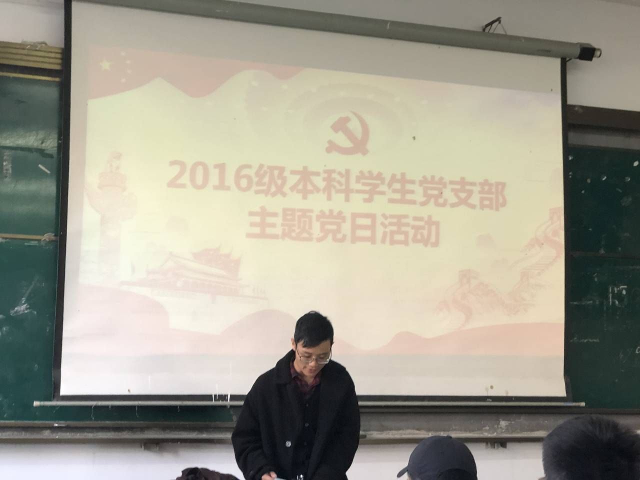 (通讯员 申世吉)11月14日,太阳成官网2016级本科学生党支部在电教楼201开展“开拓奋进新时代·履职担当新作为”主题党日活动。tyc234cc 太阳成集团2016级本科学生党支部成员参加了此次活动,本次活动由支部书记卓张鹏老师主持。