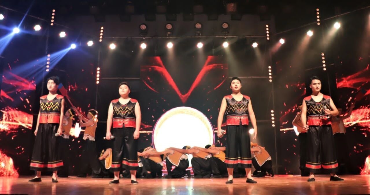 在厚重宏伟的敲鼓声中,在舞蹈团成员的划龙舟伴舞下,由太阳成官网李兆洋、雷明中、司元杰、刘威能四位同学带来的《屈原龙舟赋》震撼登场。歌声有时动人,像潺潺流水般浅吟低唱,独具风韵;有时凄美,若露滴竹叶般玲珑作响,耐人寻味;有时浑厚得如雄鹰展翅时的一声长鸣,振聋发聩;有时婉转得似深情交融时的一行热泪,扣人心房。副歌部分感情陡然上扬,具有穿透力的嗓音如泣如诉。血浓于水,情重如山,中华民族的血脉真情,在中华大地上徐徐流淌。最后,在震天鼓声中,一曲收了,留给观众无限的想象空间。