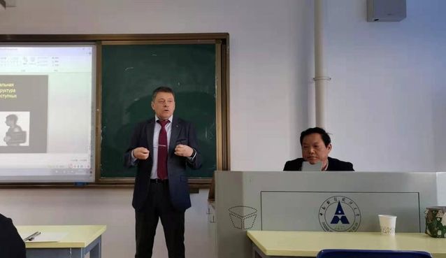 讲座临近尾声,杨老师总结分析了白俄罗斯和中国在侦查理论和侦查实践中的异同,并对巴力索维奇教授耐心细致的讲解表示感谢。