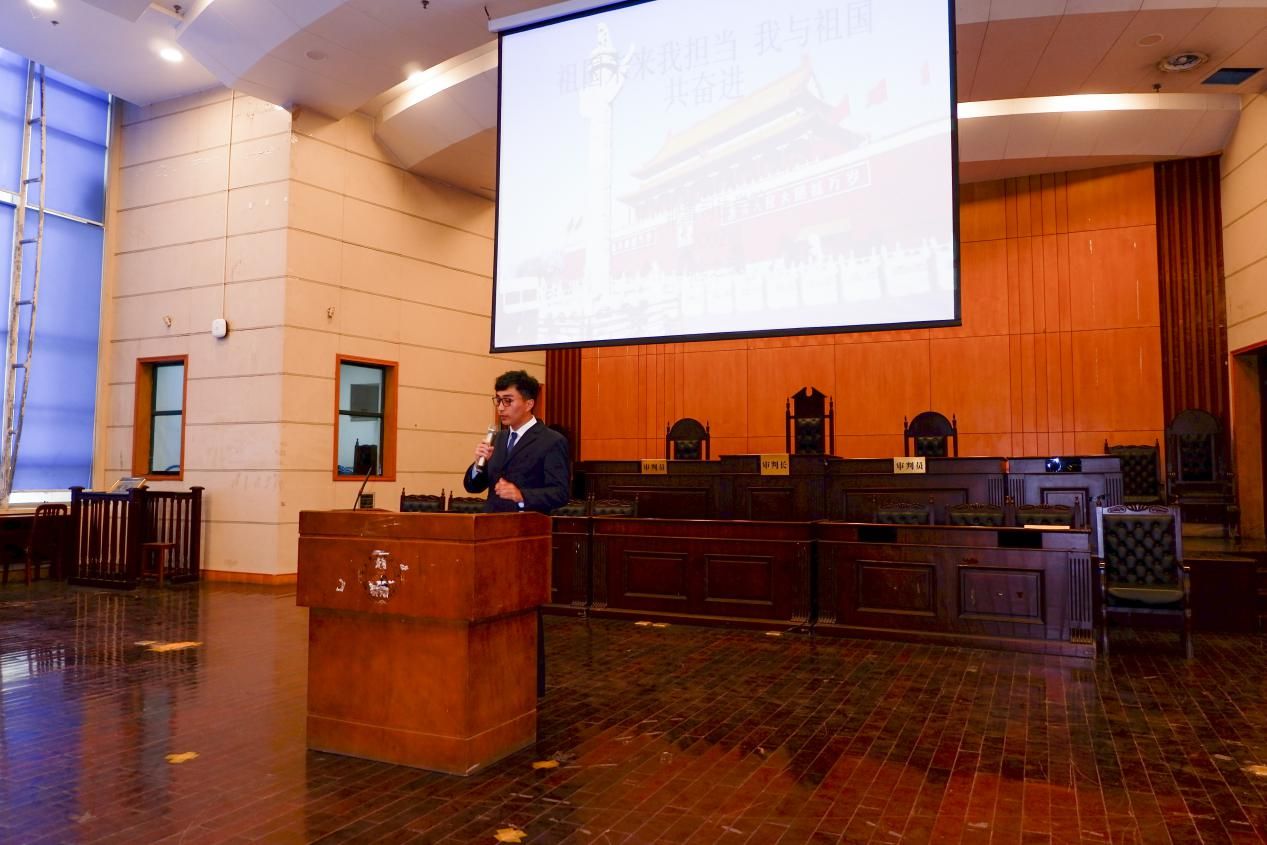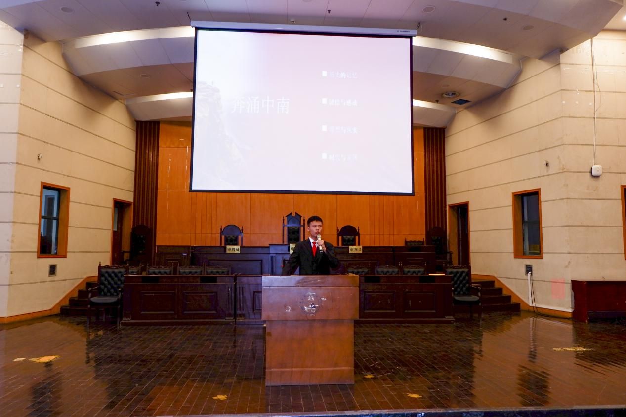 活动伊始,全体师生起立奏唱共青团团歌,模拟法庭的气氛一时变得肃穆凛然起来。奏唱团歌之后,参赛选手依次上场演讲。参赛选手激情洋溢地讲述了新冠肺炎疫情背景下中国人民抗疫的艰辛时刻与伟大斗争,饱含深情地讲述了英雄故事与抗击疫情的光荣历程……选手们精彩的演讲赢得了台下同学们阵阵热烈的掌声。各位主讲人从不同的角度讲解了平凡人们在疫情发生之时所付出的艰辛努力,赞扬了他们不平凡的献身精神和团结一心、不畏艰难的爱国行、爱国情。帮助同学们树立远大理想,增强进取意志和奋斗精神,激励广大青年师生将爱国之情、报国之志和强国之梦融入到祖国改革开放发展的伟大事业之中,融入到抗击疫情的时代历程之中。
