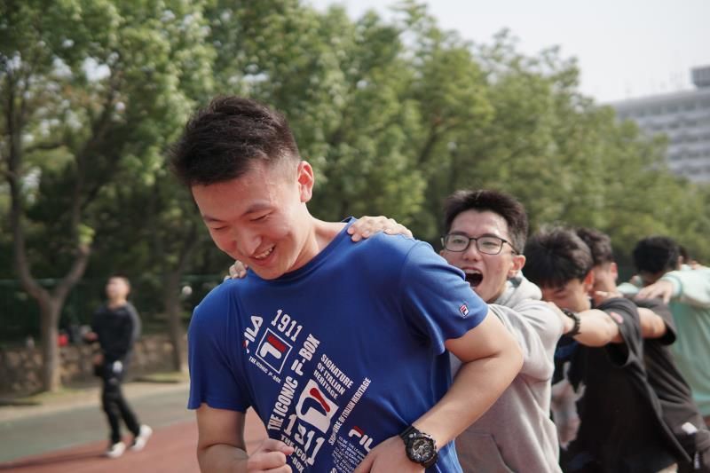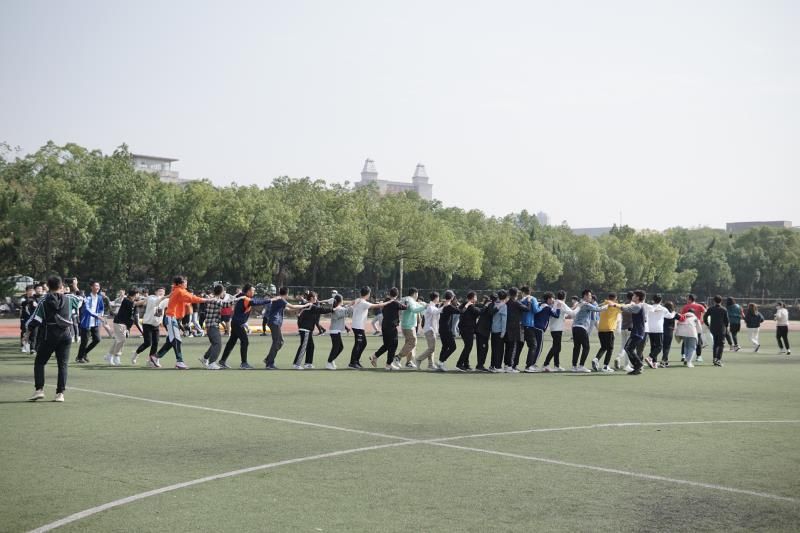 下午12时55分,活动主持人郭青川老师召集同学们集合。下午13时,各小组集结完毕,郭老师宣布阳光运动月启动仪式暨“趣味团学,玩转校园”团学组织素质拓展活动正式开始。活动伊始,郭青川老师用一个名为“贪吃蛇”的小游戏调动起了同学们的积极性,让同学们通过猜拳的形式活动起来,猜拳输的人排在赢者身后,最终大家围成了一个大圈,互相捏肩,你来我往,充分体会到了友爱互助的温馨感。而后郭青川老师又通过一个数字抱团的小游戏让同学们跑动起来,达到了热身的效果。仅仅一个热身活动,同学们的积极性就已被调动起来,大家脸上都露出了愉悦的笑容。正如郭青川老师所言,此次活动大家要忘记身份,忘记年龄,忘记性别,充分享受运动所带来的愉悦和满足。