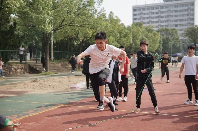 热身完毕,郭青川老师把八个小组分成了两轮来进行挑战,本次挑战的内容由穿越呼啦圈、绕8字跳绳、风雨同舟、时代列车跑这四个部分组成,每一个小组都需要完成一个挑战后才可进行下一个挑战。对于同学们来说,这是一件有着不小困难的挑战,需要大家齐心协力商议战术去完成,非常考察大家的团队协作能力和彼此间的配合与默契。