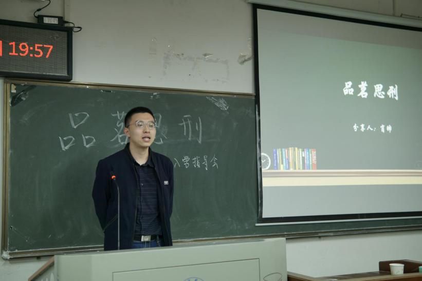 最后,2017级本科生准2021级刑法学硕士研究生肖帅分享了一些个人经验。他以风趣的语言告诉我们如何应对大学生活,以及支教推免和普通推免的相关内容。他建议我们要热爱自己所学的专业和所处的环境,要学会自主学习,利用周末时间参观其他高校校园或风景名胜等。一些同学表达了自己的相关疑惑,肖帅师兄一一给予了回复。