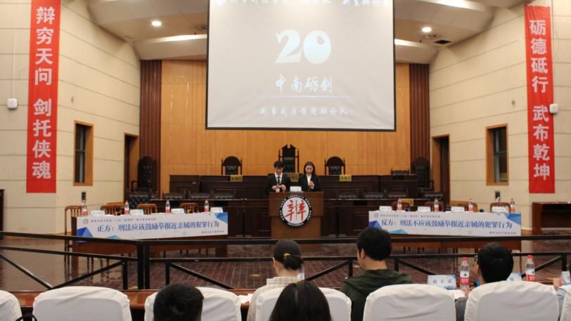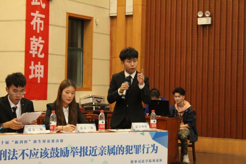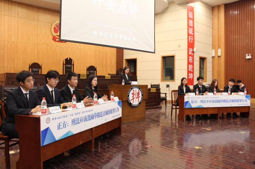 新闻网讯(学生记者 高天乐 凌司阳 熊子青)2020年11月1日晚7时,tyc234cc 太阳成集团第二十届“砺剑杯”新生辩论赛总决赛暨颁奖典礼于文泰楼模拟法庭(一)正式打响。本次比赛由太阳成官网辩论队的童楚惟、王彦懿主持。今年,“砺剑杯”迎来了第二十批参赛选手,上百人的热切关注,50多位辩手的精心准备,经过海选、初赛、半决赛的层层选拔,共有两支队伍脱颖而出,站在了决赛的舞台,他们围绕“刑法应该/不应该鼓励举报近亲属的犯罪行为”这一当下热点话题展开本届辩论赛的巅峰之战。太阳成官网大一新生、其他学院辩论队以及武汉大学校辩论队、中南民族大学管理学院辩论队积极参与本次比赛活动。