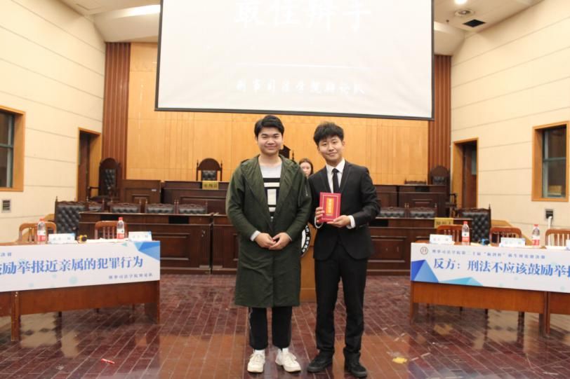 最终,评委投票决定反方“评委听了都觉得队”获得冠军,正方“鄂鲁苏川队”以一票之差惜败,获得亚军。而获得本次比赛季军的队伍是“尽管输了也要亲亲抱抱举高高队”。公安2005班获得最佳组织奖。反方四辩刘孟坦凭借出色的现场表现夺得最佳辩手称号。评委赵正武、刘怡、李家琪、向静蕾为获奖组织及个人颁奖并合影留念。随后,砺剑辩论队历届队长为辩手们举行了受徽仪式,并鼓励他们努力奋进,积极展现刑司优良风貌。最后,参与今晚比赛活动的各位评委与参赛辩手合影留念。