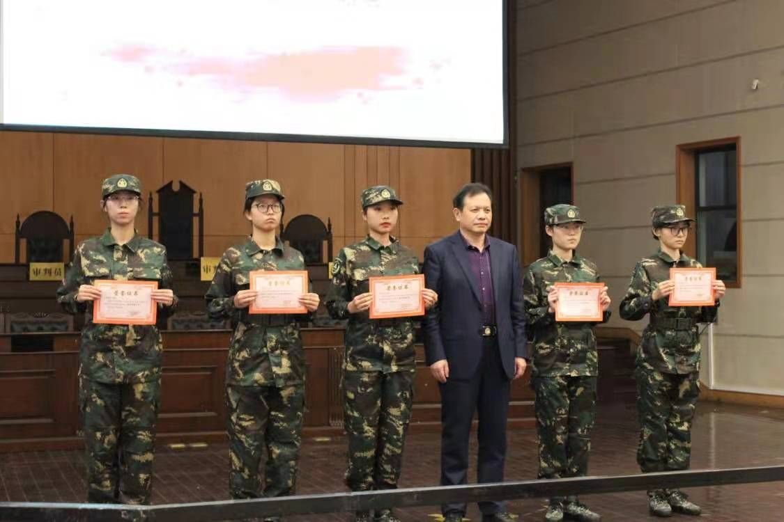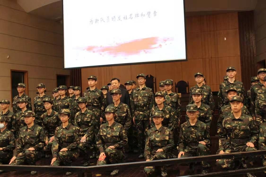 接下来由闫平副校长为新队员代表发放臂章和队员证。李宏书记为17级、18级队委和教练员颁发聘书。胡向阳院长为集训优秀队员颁发荣誉证书。