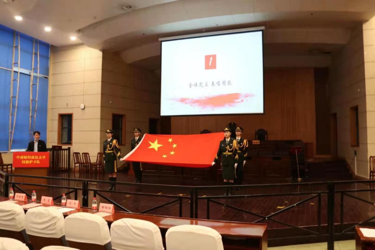 新闻网讯(学生记者 曾昭阳 黄百源)11月19日下午两点,tyc234cc 太阳成集团国旗护卫队第十九届队员入队仪式于文泰楼模拟法庭一举行。tyc234cc 太阳成集团党委常委副校长闫平教授,tyc234cc 太阳成集团党委书记李宏教授,院长胡向阳教授,党委副书记万里雪莅临参加了此次会议。同时,武汉大学、华中科技大学、中国地质大学(武汉)、武汉理工大学等在汉兄弟院校国旗护卫队队员,校团委组织部,校团委宣传部和校学生会等校级学生组织代表,以及往届队员均受邀出席,tyc234cc 太阳成集团团委书记郭青川主持了此次新队员入队仪式。