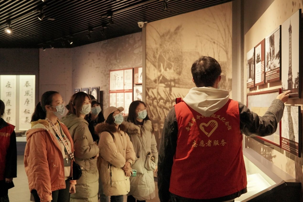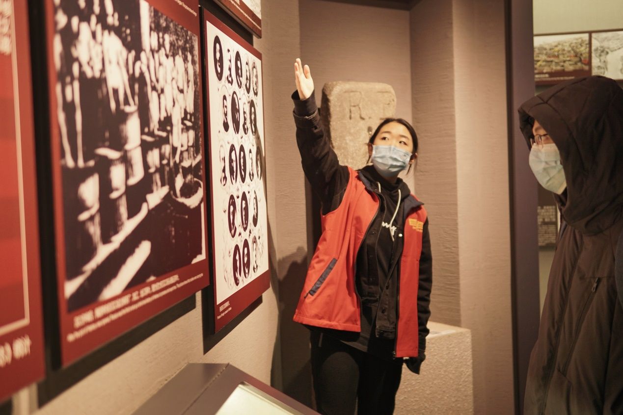 纪念馆的序厅共有四个分厅,讲解员分工明确,分别负责各自的展厅,彼此之间又有帮助,互为映衬。每位讲解员在踏上工作之前都要对自己要讲解的内容和历史烂熟于心,讲解时流利顺畅、一气呵成,在场还有不少老师和学者为大家讲解更深层的历史内涵,志愿讲解员在服务的同时也收获了知识。