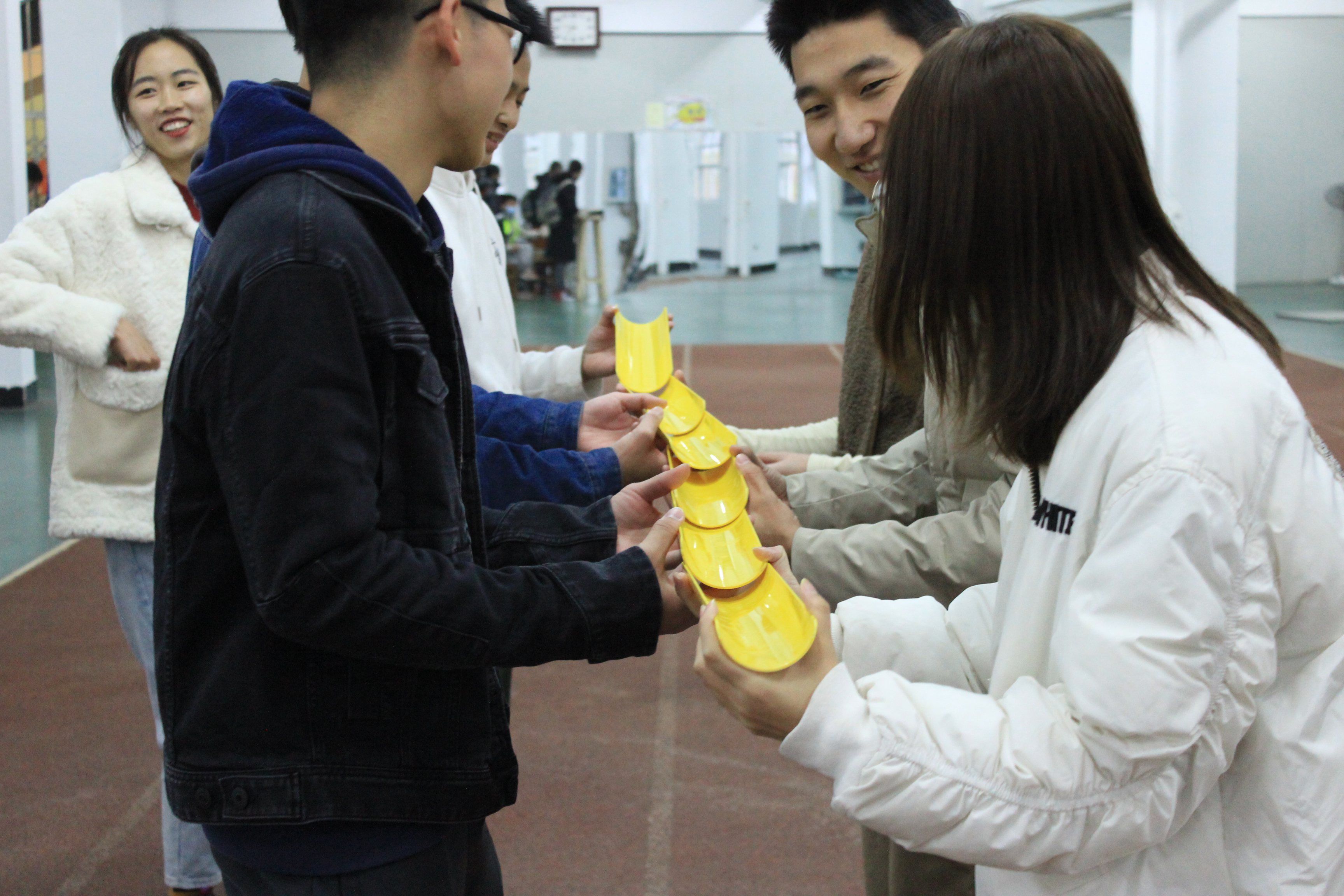 活动开场,素拓中南的相关成员对本次活动作出介绍,并欢迎各位同学的到来。待全体准备就绪后,所有成员分成四组,分别是姐妹花队、颜值巅峰队、超能陆战队与杨队后援会队,有序开展热身活动“兔子舞”。伴着节奏感满满的兔子舞音乐,国护的每组成员在指导口令下做出相应的肢体动作,轻快有力、欢笑雀跃,在轻松愉悦的氛围中同学们逐渐放松下来,对接下来的活动翘首以待。