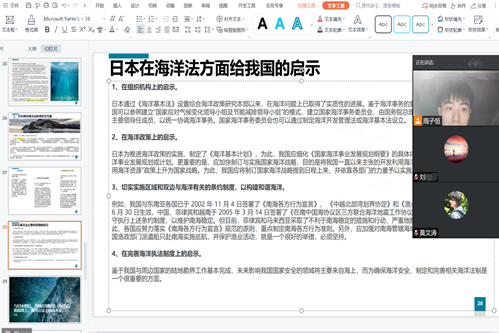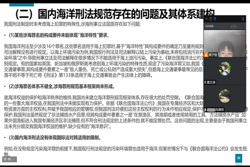 通过分别与向律师与刘老师进行线上访谈,我们对我国海洋刑法体系建构有了更为深刻的认识,我们也就立项过程中关注的重点问题展开讨论。向律师就我们所设计的调查问卷给出提议,随后我们也根据其建议对问卷内容进行了调整。刘老师对我们的主体表示高度认可,对我们的研究路径与研究方法予以肯定,并建议我们持续跟进,继续阅读相关领域新发表的高质量论文及资料。
